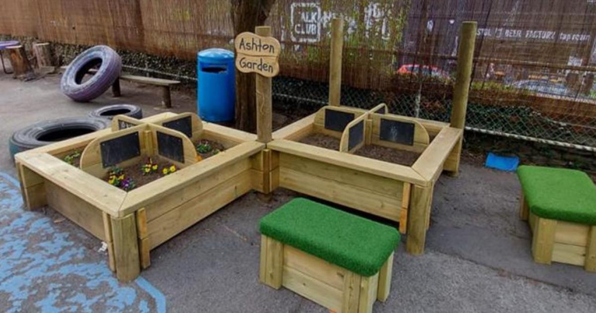 We extended and developed their existing Mud Kitchen area, to enable more children to enjoy messy play at one time, and since the teachers wanted this area to be blocked off at certain times we designed small fence panels with chalkboards which could be used as blockades and were easily moveable. We also installed a Dual Planter which has been designed to give multiple children access to the soil and planting at the same time.