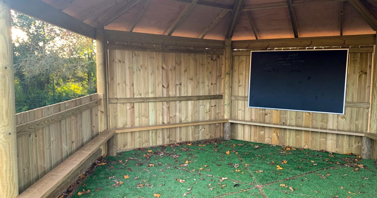 The Large Outdoor Classroom is an impressive focal point for the three schools and is a central hub for outdoor learning. The Timber decked flooring is inlaid with Play Grass to minimise slipping on the surface and creating a softer finish, this can enable more children to sit on the floor comfortably. The Outdoor Classrooms give children the opportunity to stay outside whatever the weather and have the well-needed time away from the classroom to be able to refocus and demonstrate a lower level of stress.