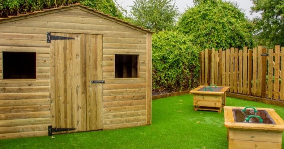 We installed an Outdoor Learning Room, which provides a covered space for the children to play and learn, and also a space for storing equipment. The two Chalkboards on the doors encourage children to develop their literacy skills. Our Sand and Water Activity Tables offer opportunities for children to enhance their fine motor and problem-solving skills.