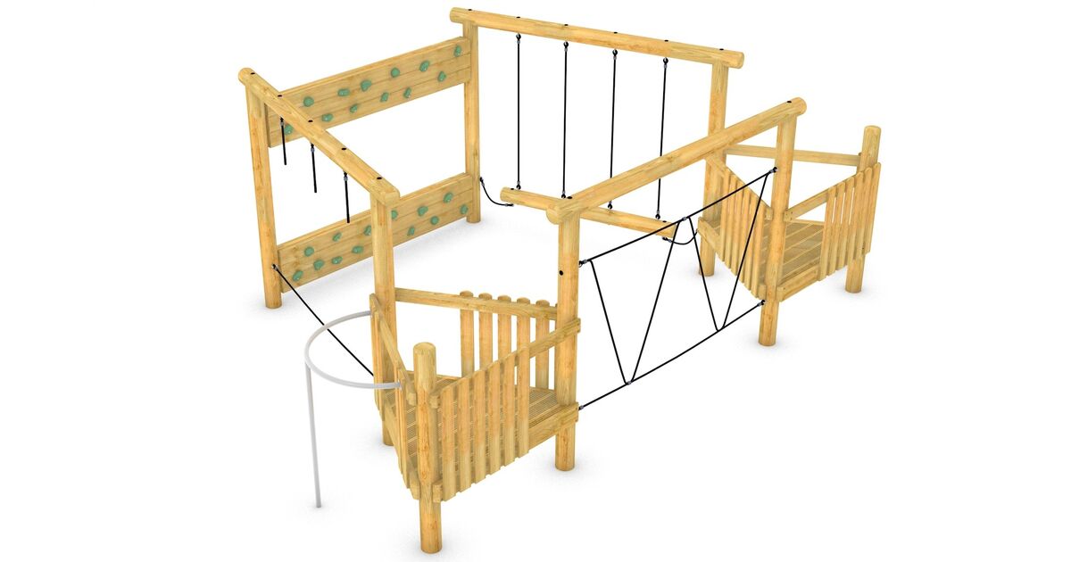 Its varied height levels and interconnected elements encourage climbing, balancing, and traversing, promoting overall body strength and coordination.
