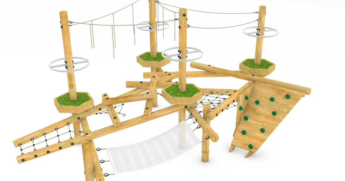 All: Timber Crossings • Platforms (4) • Hammock • Parallel Guide Ropes • Drop Rope Crossing • Cargo Net • Suspended Net Rope Ladder • Climbing Ramp