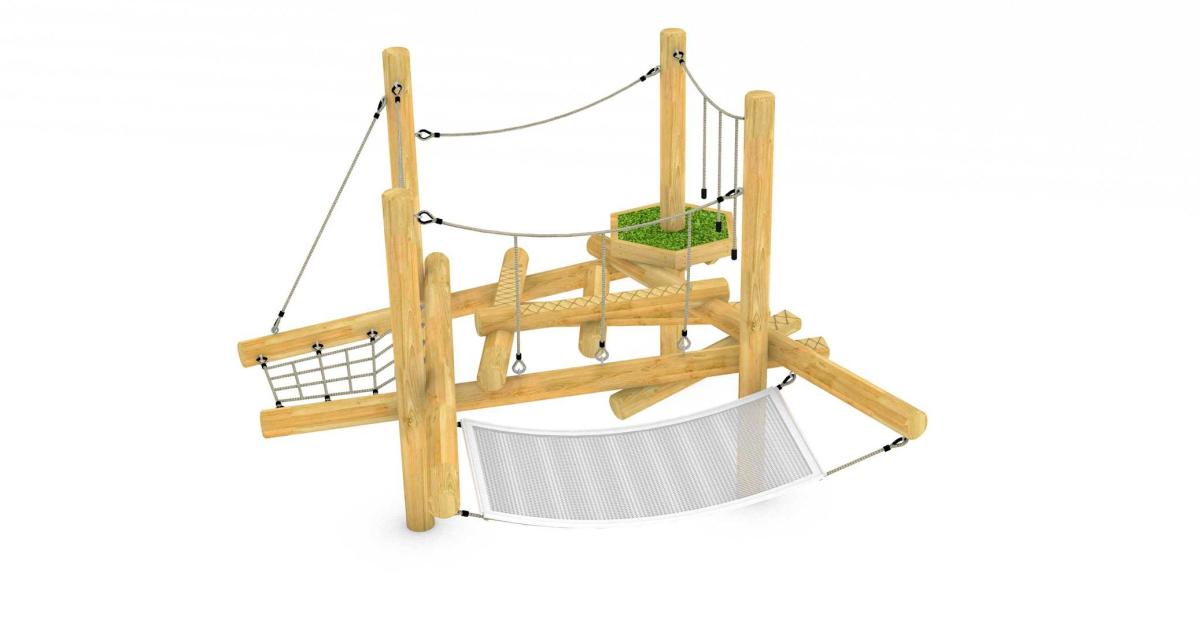 Timber Crossings • Platforms (1) • Hammock • Overhead Guide Ropes • Angled Guide Rope • Drop Rope Crossing • Slalom Weave Traverse • Suspended Net