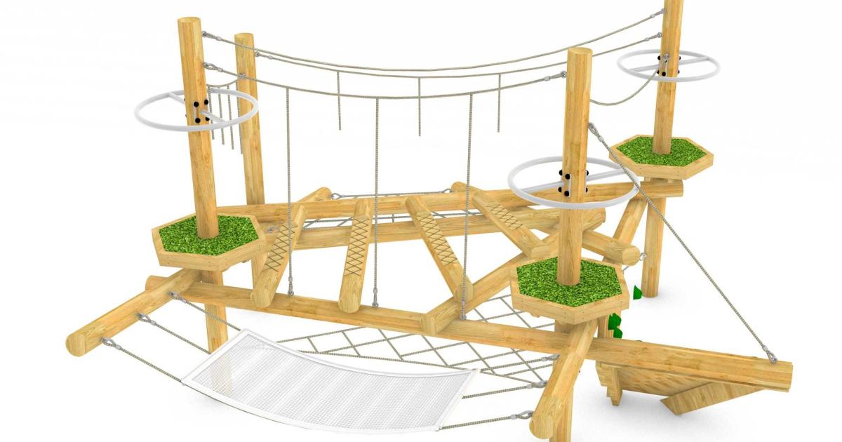 All: Timber Crossings • Platforms (3) • Hammock • Overhead Guide Ropes • Angled Guide Rope • Drop Rope Crossing • Slalom Weave Traverse • Suspended Net • Climbing Ramp