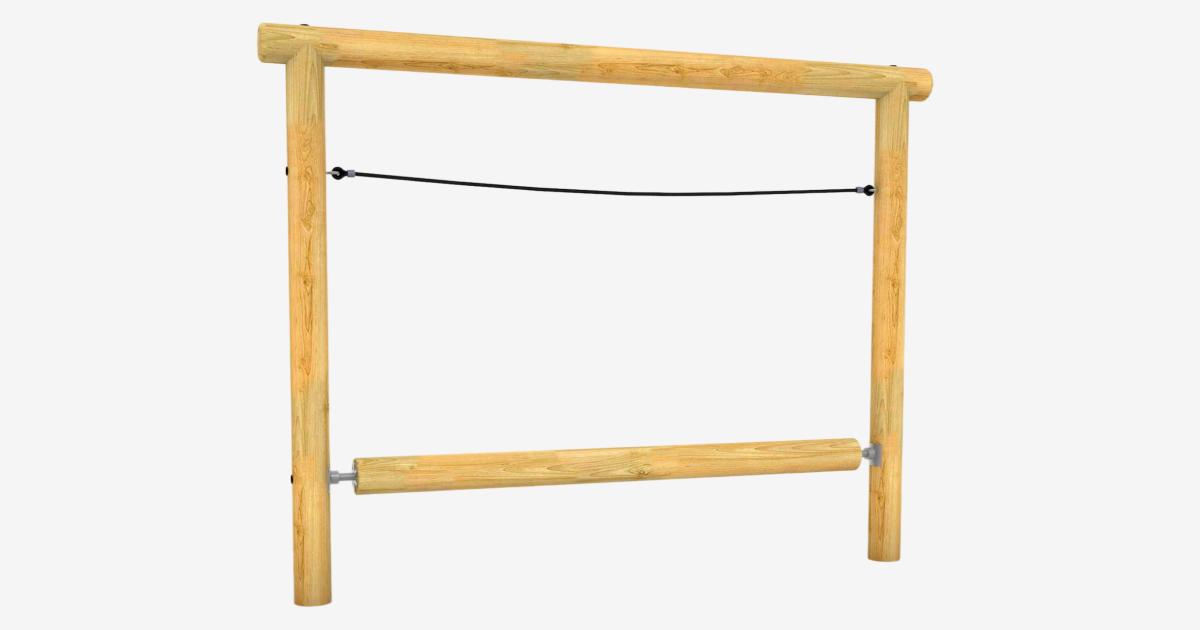 The rotating lower timber beam provides a balancing challenge to children as they use their core and upper body strength to move along the Rolly Log with the upper rope for support.