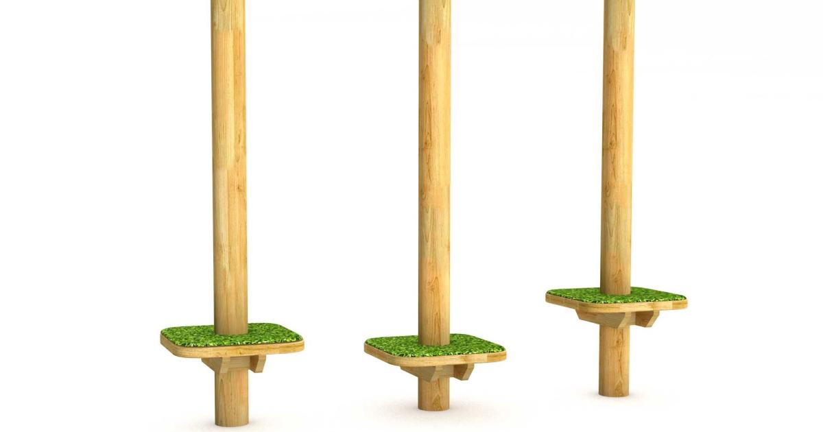 Children can step up onto the Stepping Trees and walk from one to the other, developing their core muscles and upper body strength by reaching and grabbing the smooth timber posts.