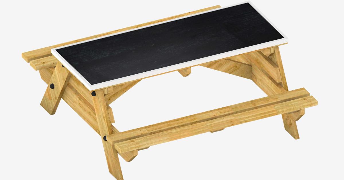 Our Picnic Table with chalkboard top provides the perfect space for mark making and games in any playground and outdoor space.