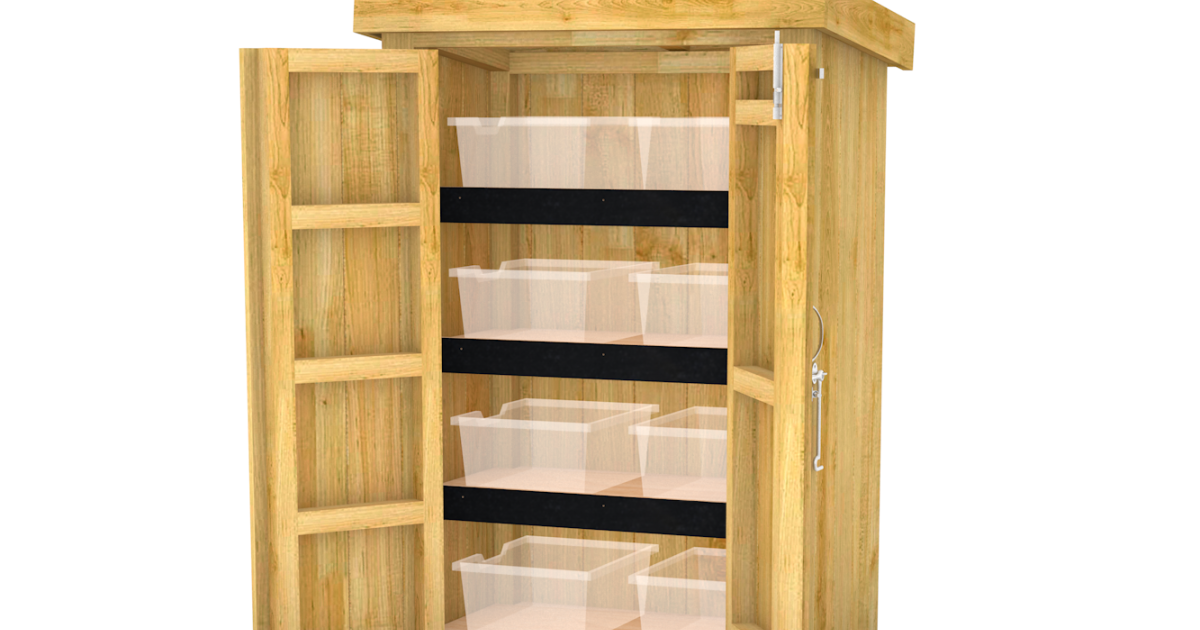 Our freestanding Small Store 8 Tray is made from high quality treated Timber and is a great solution to your playground storage needs.