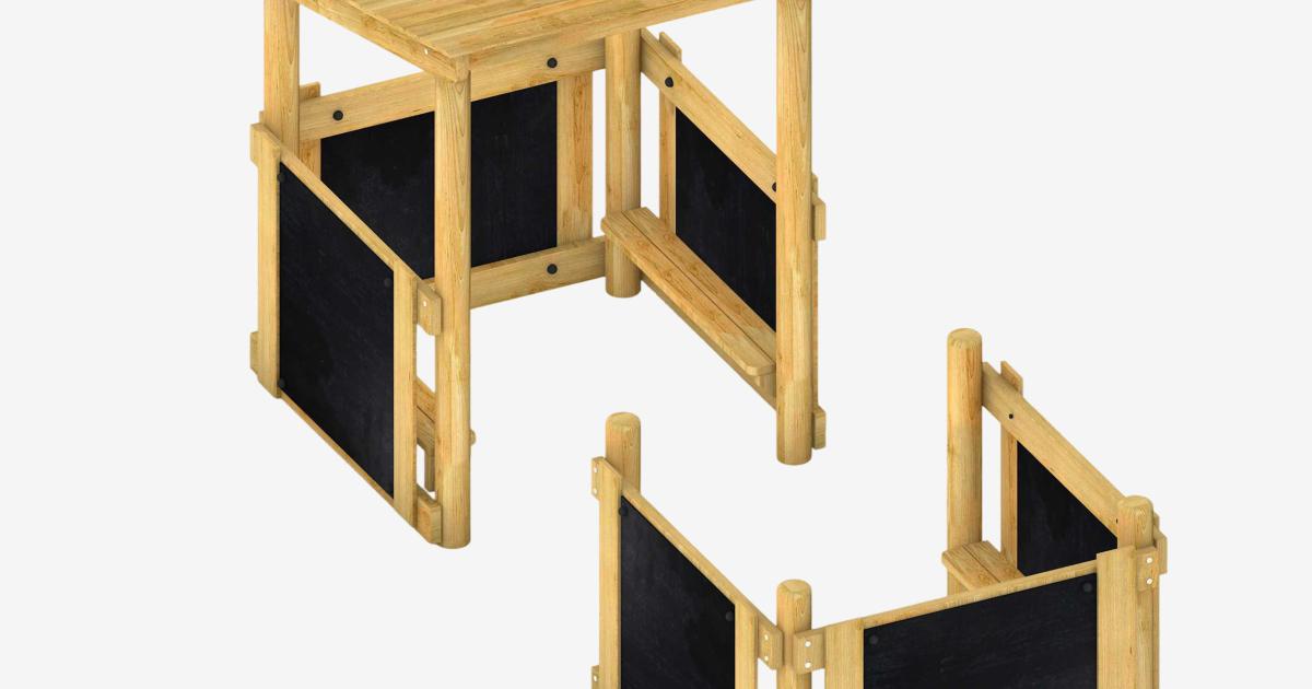 It includes vertical chalkboard sides providing an exciting canvas for children to draw and write fostering upper body gross motor skills and fine motor grip necessary for children's handwriting development. The unique design evokes creativity and imaginative play to further add to the learning potential the Writing Den has to offer.